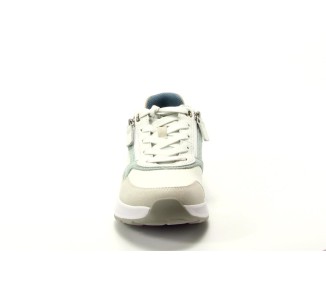 Sneaker van het merk Durea, model 6279 1490. Ideaal voor het voorjaar door de frisse kleurencombinatie, door de witte zool kunt u de schoenen goed combineren met alle soorten en kleuren outfits. De schoen is voorzien van een uitneembaar voetbed en is dus geschikt voor uw eigen losse steun. Naast een veter heeft de schoen ook een ritssluiting hierdoor wordt het aan en uit trekken gemakkelijker.