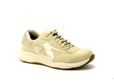 sneaker van het merk Durea, model 6308 1569 in de kleur beige roze (multi-color) met glimmende accenten.