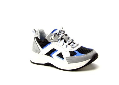 De Trackstyle sneaker Evan Engel 182 in grijs heeft een sportieve en stoere uitstraling. Het ademende mesh in combinatie met stevige overlays zorgt voor een comfortabele en stabiele pasvorm. De flexibele, lichtgewicht zool biedt optimale ondersteuning tijdens school, sport en buitenspelen. De grijs-blauwe accenten geven deze sneaker een frisse en moderne look.
